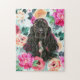 Jigsaw Puzzle mit schwarzem Cocker spaniel art. Farbenfrohe florale Hintergrund. von Wendy Art.