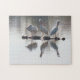 Pelikane, die auf dem Login in einem Stillwasserteich stehend sind. Reflektionen und Wasser im Hintergrund zeigen Wellen.