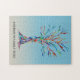 Personalisiertes Familienbaum-Puzzle. Dieses stilvolle Puzzle ist mit einem regenbogenfarbenen Familienbaum-Design auf einem blauen Ober-Hintergrund dekoriert. Passen Sie es mit Ihrem Familiennamen an. Der Baum wurde ursprünglich aus Mosaik mit winzigen Teilen aus farbigem Glas hergestellt. Original Mosaik © Michele Davies.
