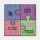 Ein lustiger Puzzle-Stückmagnet, um sich auszudrücken: die Wörter ändern, behalt oder löschen.