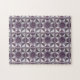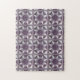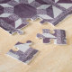 Quilt Block in lila-weißem "spool"-Muster. Acht Sporen drehen sich um eine Mitte dunklen lila. Ein lila Ausdruck der Blume ist der "Faden" am Spool und auch der Rahmen zwischen den Blöcken.