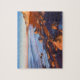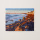 Malerei eines felsigen Strandes mit ruhigem Meer im Morgengrauen.