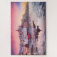 Stockholm Puzzle, Schweden. Sonnenuntergang mit Mariaberget im Stadtzentrum und gefrorener Malaren-See