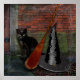 Pyewacket ist eine magische Katze, weil sein Besitzer eine Hexe ist! Eine schöne schwarze Katze, Hexenbesen und Hut in dieser Halloween-Szene!