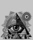 Zeigt ein digitales Kunstwerk mit einer grafischen Darstellung einer Pyramide innerhalb eines Auges, umgeben von zusätzlichen Pyramidenstrukturen, die eine surreale Landschaft schaffen, die in einer mystischen Reihe von Schwarz-Weiß-Tönen, die an Schatten und Licht erinnert, durch eine traumhafte Umgebung umschlingt. Die sanften Hügel schlängeln sich sanft unter einem dunklen Himmel, beleuchtet durch leuchtende, gegensätzliche Details, die ein Gefühl von Bewegung und Unerklärlichkeit wecken.