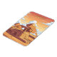 Eine stilisierte Abbildung der Großen Pyramiden von Gizeh und der Sphinx unter einem pulsierenden, bewölkten Orangenhimmel, die ein Gefühl des uralten Wunders hervorruft.