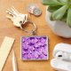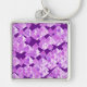 Pyramidenförmige Kristalle in Lavendeltönen und lila vor tiefem lila Hintergrund