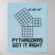 Design zeigt und illustriert das pythagoräische Theorum (a2+b2=c2) mit dem Text: Pythagoras Got It Right. Eine tolle Geschenkidee für Mathematiklehrer oder Student. Auch macht eine großartige Dekoration für Ihr Zuhause-Schulzimmer oder Klassenzimmer.