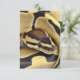 Eine gekraulte, gelbe und schwarze Python, die oben herausklebte.