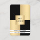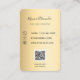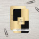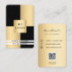 Auf der Vorderseite: Schwarz und Imitat goldene Farbblöcke. Personalisieren Sie Ihr Firmenlogo, Ihren Namen, Ihren Titel und fügen Sie es hinzu. Zurück: ein Imitat goldener Hintergrund. Fügen Sie Ihre Kontaktdaten und Ihren eigenen QR-Code zu Ihrer Website oder Ihrem Social-Media-Account hinzu.