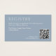 Diese Hochzeitsgeschenk-Registrierung Gehäuse / Insert-Karte verfügen über ein zeitgenössisches Set von Schriftart in Elfenbeinweiß vor einem staubigen blauen Hintergrund. Im Lieferumfang sind ein QR-Code und ein paar Monogramm auf der Rückseite enthalten.