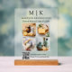 Modernes Minimalistisches Business Plaque Tabletop Akryllisches Zeichen mit 4 Fotos. Schwarz & Weiß oder wählen Sie Ihre eigenen Farben. Fügen Sie dem QR Scan Code Ihre Website oder Web-Adresse für Social Media hinzu. Ermöglicht den Kunden, die Prüfung zu verwenden, um auf Informationen zu Ihren Produkten wie Produkten oder Menüelementen zuzugreifen. Ideal für Einzelhändler, kleine Geschäfte, kleine Kioske, Messen und Events, Gastfreundschaft, Salons, Wellness-Center, Bäckereien, Cafés, Restaurants, Bars und vieles mehr. Einfach mit Ihren Monogramm-Initialen, Firmennamen und Informationen, Fotos, Slogan oder sogar mit Ihrem Logo oder persönlichem Markendesign personalisieren.