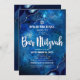 QR Code Bar Mitzvah Blue Galaxy Agate Script Bold Einladung