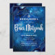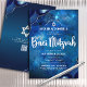 QR Code Bar Mitzvah Navy Blue Agate Galaxy Script Einladung