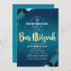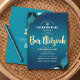 QR Code Bar Mitzvah Turquoise Ombre Agate Script Einladung