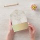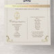 Eine luxuriöse, elfenbeinfarbene und goldene barocke All-in-One-Hochzeitseinladung, die für Paare geschaffen wurde, die klassische Eleganz und moderne Zweckmäßigkeit lieben. Mit aufwendigen goldenen Akzenten und einem vintage-barocken Monogramm-Wappen gestaltet, strahlt diese Einladung zeitlose Charme aus und hält alles schön organisiert und umweltfreundlich.