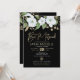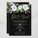 QR Code Bat Mitzvah Black Gold Floral Script Girly Einladung