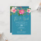 QR-Code Bat Mitzvah Turquoise Floral Gold Script Einladung