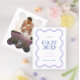 Diese Hochzeit speichern Sie die Datumskarte ist mit einem scharfen Rahmen. Es verwendet ruhige Farben wie Lavendel, inspiriert von Lavendelfeldern. Die lustigen und stilvollen Schriftart fügen eine Touch Eleganz hinzu, und das Wort in der Mitte wird in hellblau hervorgehoben, um einen lustigen Pop von Farben zu schaffen und verwendet eine größere Schriftart-Größe. Außerdem können Foto und QR-Code auf der Rückseite personalisiert werden.