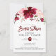 QR Code All-in-One Bordeaux und rosa Aquarell Blumendusche Einladungen. Passen Sie Namen, Daten und Informationen an.