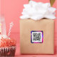 Personalisieren Sie diesen Aufkleber mit Ihrem QR-Code (in beliebiger Farbe) und Geschäftsname, Website und Zahlencode in weiß mit lila geometrischer Grenze.