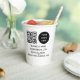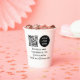 QR Code Firmenlogo, beruflicher, individueller Papierbecher. Schwarzweiß, einfaches Design. Ideal für Ihr Unternehmen, Business.