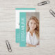 Mit diesem modernen und dynamischen Design der Visitenkarte machen Sie einen unvergesslichen ersten Eindruck. Der wagemutige, senkrechte Streifen, aquamarin an der Vorderseite, umrahmt Ihren Namen elegant, während ein beeindruckendes Foto von Ihnen Aufmerksamkeit erregt und eine persönliche Touch verleiht. Auf der Rückseite finden Sie Ihr Firmenlogo, Ihren Namen, Ihren Titel und alle wichtigen Kontaktdaten, einschließlich eines QR-Codes, die in einem sauberen und gut organisierten Layout präsentiert werden. Dies garantiert Professionalität und Annehmbarkeit.
