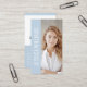 Make a memorable first impression with this modern and dynamic business card design. The bold vertical strip of pastel blue on the front elegantly frames your name, while a striking photo of you captures attention and adds a personal touch. The reverse side features your company logo, name, title, and all essential contact details, including a QR code, presented in a clean and organized layout, ensuring both professionalism and approachability.