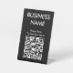 QR Code Cafe Big Print Menü Black Pedestal Sign. Personalisieren Sie dieses moderne Podestschild mit Ihrem QR-Code und Ihrem Firmennamen.
