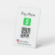 Ein QR-Pocket-Podest-Schild ist eine Art von Signatur, die verwendet wird, um eine Cash-App zu fördern und Informationen über diese zu liefern, die QR-Codes für Transaktionen verwendet. Das Zeichen wird normalerweise auf einem Sockel oder auf einem Ständer platziert, sodass es für die Benutzer leicht sichtbar und zugänglich ist. Normalerweise verfügt es über einen großen QR-Code, den Benutzer mit ihren Smartphones scannen können, um eine Zahlung oder einen Transfer zu starten. Das Zeichen kann auch den Namen und das Logo der Cash-App sowie weitere Informationen oder Anweisungen für die Nutzer enthalten. Das Design des Zeichens kann variieren, aber es ist oft schlicht und modern, mit klaren und prägnanten Botschaften, um Aufmerksamkeit zu erregen und die Verwendung zu fördern.