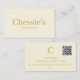 Eine berufliche, cremefarbene Visitenkarte mit goldfarbenem Text. Die Karte hat den Firmennamen auf der Vorderseite, auf der Rückseite befinden sich die Geschäftsinformationen. Ersetzen Sie das QR-Bild durch Ihr eigenes QR-Bild. Der Rücken hatte auch eine elegante Initiale, die den Namen Ihres Unternehmens oder Ihres Namens darstellt. Sie kann auch entfernt werden, wenn Sie gewollt haben. Elegant und einfach. Eine berufliche Karte, geeignet für Wellness-Center oder berufliche Kosmetik-Unternehmen, sowie ein Rechtsanwalt. Aus einer Reihe von Chessie's Fine Designs . Sehen Sie die Sammlung über den Link weiter unten auf der Produktseite.