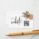 Rustikale Weihnachtskarte für Ihre Hochzeit mit QR Code. Diese Karte enthält bearbeitbare Texte, in denen Sie Ihre Website-Adresse auflisten können, damit die Gäste während ihres bleibe für die Hochzeit hilfreiche Informationen finden können. Das Design zeigt Aquarellbilder von Winterbotanicals, wie z.B. Misteloe, Kiefernzweig, Beeren, Orange, etc.