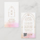 Celestial Pink Monogram Yoga Instructor QR Code Business Card. Mit einem traumhaft blütigen rosa Hintergrund, mit luxuriösen goldenen Sternen und einem personalisierten Monogramm.