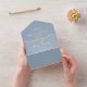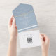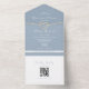 Elegantes staubblaues und goldenes Seilherz - eine Hochzeitseinladung mit moderner minimalistischer Typografie und romantischem Siegel & Sende-Format. Diese bequeme Hochzeitseinladung beinhaltet eine abnehmbare UAWG-Postkarte mit QR-Code für einfache Antworten, sowie Platz, um Ihre Hochzeitswebsite für Gästetexte hinzuzufügen. Es werden keine separaten Umschläge benötigt - einfach falten, Siegel und senden. Eine stilvolle und preisgünstige Wahl für Paare, die eine romantische, moderne oder minimalistische Hochzeit planen. Ideal für elegante Hochzeiten zu jeder Jahreszeit.