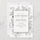 QR-Code Elegante Schwarz-weiße Blumenstrauß-Linie Einladung