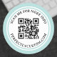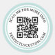 Rundaufkleber mit QR-Code und Sondertext in einem eleganten Serif-Schriftart. Rund um ist ein helles aqua blau, doppelter Rand. Ändern Sie Schriftart und Farben, verschieben und verändern Sie Elemente mit dem Entwurfstool. Folgen Sie uns auf Facebook: @business stationery für weitere Produkte, News, Verkäufe und mehr.