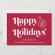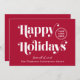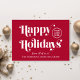 Rote Weihnachtskarte für Ihre Kunden, Kunden, Mitarbeiter, Partner, etc., mit "Happy Holidays" in stilvoller weißer Typografie, Ihrem Firmenlogo und einem saisonalen Gruß (vielen Dank, von uns allen usw.) und Firmennamen in einfacher, moderner weißer Typografie auf der Rückseite, geben Sie Ihre Website-Adresse ein, um einen scannbaren QR-Code zu erstellen, den Ihre Kunden scannen können einfach mit Ihren Online-Plattformen.