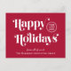 Einzigartige rote Weihnachtskarte für Ihre Geschäftskunden, Mitarbeiter, Partner, etc. mit "Happy Holidays" in stilvoller weißer Typografie, Ihrem Firmenlogo und Namen in schlichter, moderner weißer Typografie. Fügen Sie auf der Rückseite Ihre personalisierte saisonale Botschaft des Dankes und Dankes hinzu und geben Sie Ihre Website-Adresse ein, um einen QR-Code zu erstellen, den Kunden scannen können, um sich mit Ihren Online-Plattformen zu verbinden.