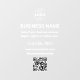 Modernes Fensterzeichen für Ihr Unternehmen mit Ihrem QR-Code für Kunden, um eine Liste Ihrer Produkte, Dienstleistungen und Preise zu suchen. Fügen Sie Ihr Logo, Ihren Firmennamen, QR-Code, Telefonnummer und Social Media Handle in einfacher White Typografie hinzu.