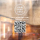 Modernes Fensterzeichen für Ihr Unternehmen mit Ihrem QR-Code für Kunden, um eine Liste Ihrer Produkte, Dienstleistungen und Preise zu suchen. Fügen Sie Ihr Logo, Ihren Firmennamen, Ihre Telefonnummer und Ihre Straßenanschrift in einfacher weißer Schrift hinzu. Geben Sie Ihre Website URL-Adresse ein, um einen scannbaren QR-Code zu generieren.