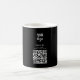 Eine moderne personalisierte Business-Kaffee-Tasse mit Business-Logo und QR-Code. Personalisieren Sie mit Ihrem Logo, QR-Code und Details, um Ihre eigene elegante, schwarz-weiße Business Kaffee Tasse zu kreieren. Mit einem eigenen Farbhintergrund oder Schriftart können Sie noch weiter individualisieren.