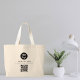 Eine moderne personalisierte Business Tote Tasche mit Firmenlogo und QR Code. Personalisieren Sie mit Ihrem Logo, QR-Code und Details, um Ihre eigene elegante, schwarz-weiße Business Tote Tasche zu erstellen.