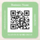 Personalisieren Sie Ihren QR-Code in beliebiger Farbe, stellen Sie jedoch sicher, dass er dunkel genug ist, um zu scannen. Firmenname, Website und Nummer-Code sind in weißem Text mit Salbei-Grenze.