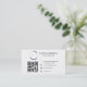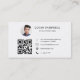 Auf der Vorderseite der Visitenkarte befindet sich ein Foto-Layout mit Firmenname, Mitarbeitername/Titel, Kontaktinformationen und QR-Code. Fügen Sie Ihr Logo auf der Rückseite hinzu. Der Hintergrund ist schwarz, aber Sie können ihn ändern