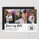 QR-Code Save the Date Karte mit drei Fotos in einer sauberen Collage. Save the Date ist kalligraphisch geschrieben. Fügen Sie Ihre Namen und Hochzeitsinformationen zusammen mit einem QR-Code, der zu Ihrer Hochzeitswebsite führt, hinzu.