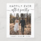Kostengünstige Veranstaltung oder private Hochzeitsankündigung und eine einmalige Einladung zum Hochzeitsempfang. Die Vorderseite zeigt Ihr Foto "Happily Ever After Party" in einer Mischung aus einfachen Typografie und einem schicken Skript mit Swashes und Ihre Vornamen und Hochzeit oder Empfang Datum durch ein Herz verbunden. Auf der Rückseite, personalisieren Sie Ihre Heiratsankündigung und Empfang-Einladung, geben Sie Ihre Website-Adresse, um einen QR-Code für Gäste zu scannen, um Ihre Hochzeit Fotos, alle Details und UAWG online, und fügen Sie Ihre Namen in einem signaturähnlichen Skript. Dieses halbglänzende Haushaltspapier ist gewichtsähnlich wie Foto. Es ist auch eine größere 12x18-Kartenversion verfügbar (für den Link die Meldung).
