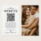 Elegante Hochzeitswebkarte mit QR-Code, die Ihre Hochzeitsgäste auf Ihre Website leitet, die zusätzliche Informationen über Ihre zukünftige Hochzeit, d.h. Unterkunft, Anfahrtsbeschreibung, etc. enthält. Auf der Rückseite dieser Karte befindet sich ein Foto von Ihnen und Ihrem Partner.