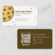 Das einfache Design umfasst eine Business-Karte für Bäckereien mit Social Media, QR-Code, die sich perfekt für einen beruflichen Bäcker, ein Restaurant oder einen Caterer eignet. Es bietet eine Leckerei zum Dessert, ein Thema für Schokoladenkekse, eine scannable Website, einen modernen minimalistischen, trendigen Chic Stil.