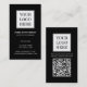 Einfache berufliche Visitenkarte in Schwarz/Weiß mit Ihrem Logo, Geschäftsinformationen und Website QR Code (auf der Rückseite). Tipp: Sie können Text- und Hintergrundfarben so ändern, dass sie mit Ihrem Logo und Ihren Markenfarben übereinstimmen.