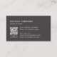 Rustikales elegantes Visitenkartendesign mit einer gezeichneten Abbildung von Berggipfeln, Kiefernbäumen und einem fließenden Fluss, mit zwei Zeilen Text für Ihren Firmennamen und/oder Ihren Namen und Geschäftsbeschreibung. Fügen Sie Ihre vollständigen Kontaktdaten auf der Rückseite in Weiß auf rustikal, staubig grau-braun, zusammen mit einem anpassbaren QR-Code.